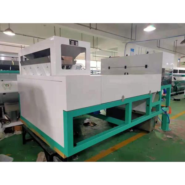 The main components of the color sorter are feed hopper, vibrating feeder, chute, light source, background plate, CCD lens, outlet hopper, nozzle, air compressor, air tank, and filter.